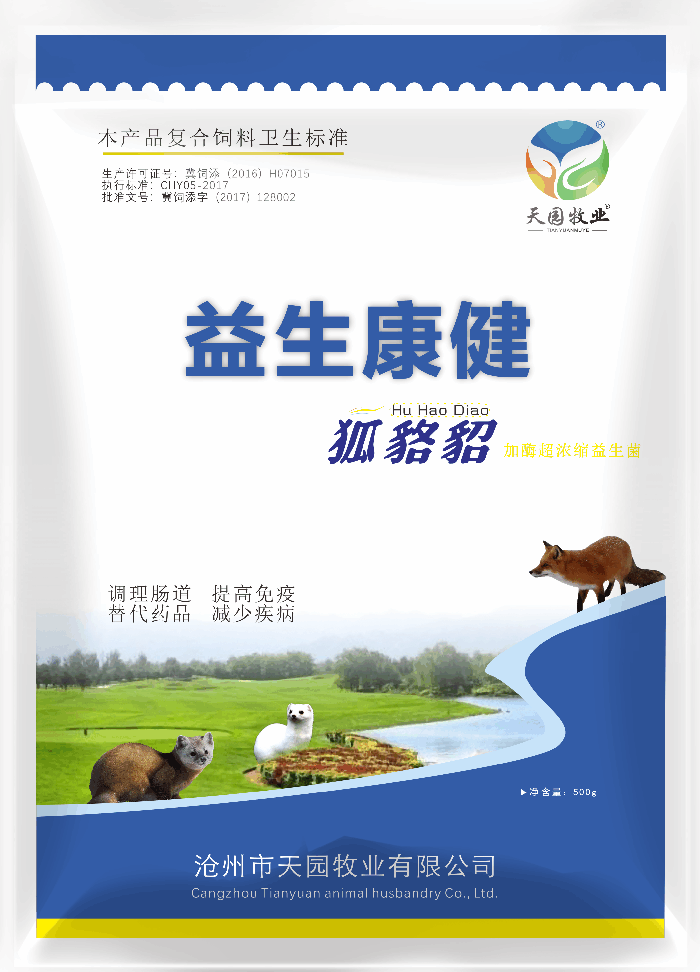 ②狐、貂、貉、犬、兔等皮毛动物:每吨饲料加本品1.5-2kg。