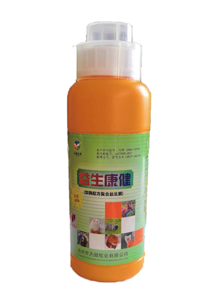 【产品成分分析保证值】高活性抑菌型枯草芽孢杆菌、乳酸菌及代谢产物。活菌总数≥3.0×100000000CFU/ml。【用法用量】本品适用于狐、貉、貂等毛皮动物,将菌液添加到饮水中饮用。1、使用方法将菌液添加到饮水中供狐貉貂饮用,或本品兑水后喷洒在饲料表面供狐貉貂食用。2、用量每天每只狐貉饮用1ml左右,貂饮用0.5ml左右,或每500ml毫升菌液供500只狐貉1000只貂使用。【包装规格】500ml×30瓶/箱