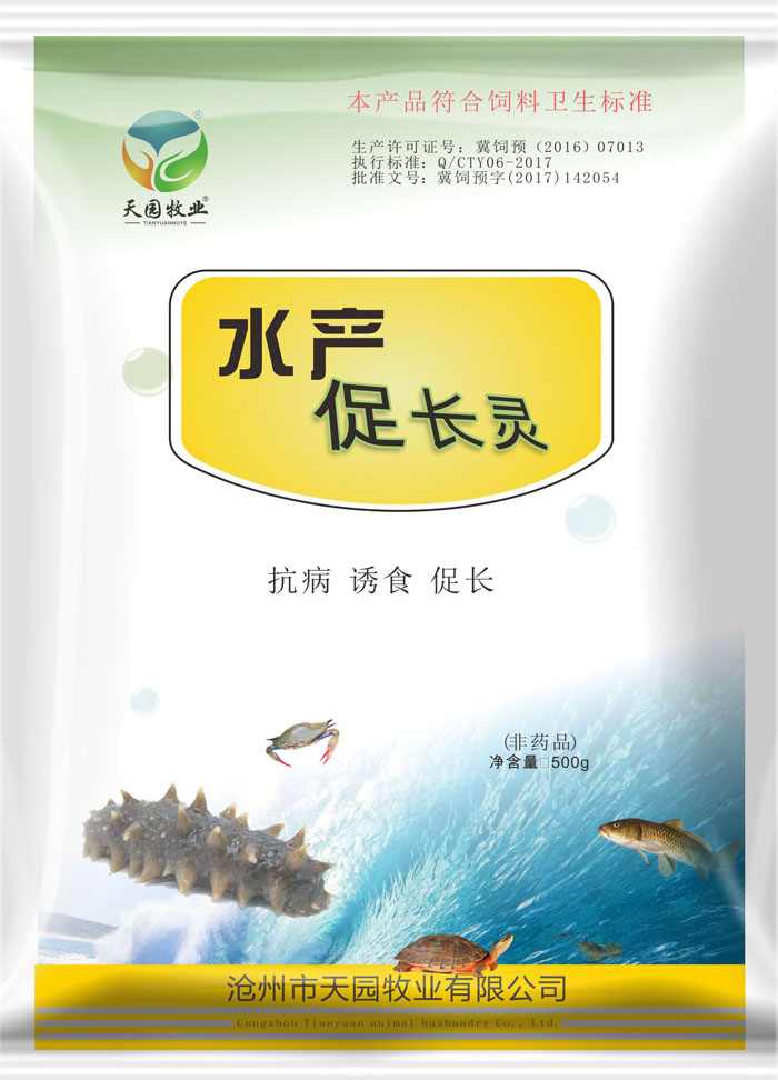 免疫增强剂、促长因子、诱食剂、细胞破壁酵母适量用法用量:本品500克拌料60公斤 泼洒:2—3亩/米深包装规格:500g/袋,20袋/件